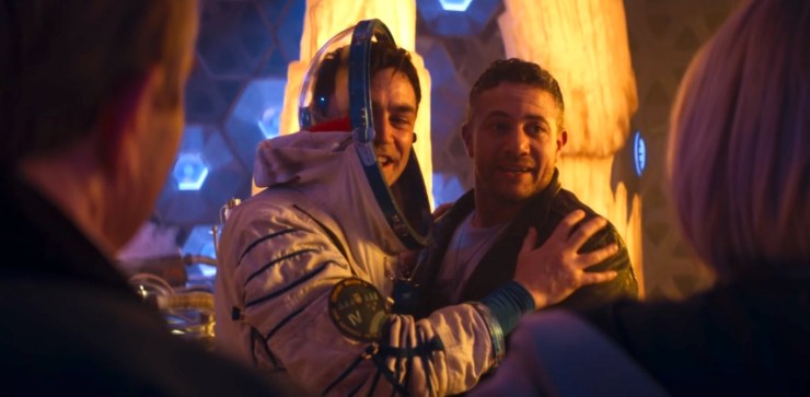 Arriving in Hong Kong, Jake meets the other members of the ‘fam’, Graham (Bradley Walsh) and Yaz (Mandip Gill) who help him to break into a warehouse in search of the missing Adam.