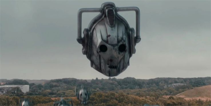 A terrible roaring sound from the sky announces the arrival of a wave of Cyber-drones, ‘imaginatively’ shaped like Cybermen helmets. The drones swoop down and easily knock out all of the Doctor’s defences, killing some of the fleeing villagers for good measure. The Doctor orders the remaining survivors to run; return to the spaceship which brought them to this world. She orders the ‘fam’ to go with them, as the TARDIS is parked too far away for them to survive the trip back (remember when it was strange the TARDIS was parked so far away – it was to facilitate this plot ‘development’). The Doctor will stay behind and buy them some time, so they can escape.