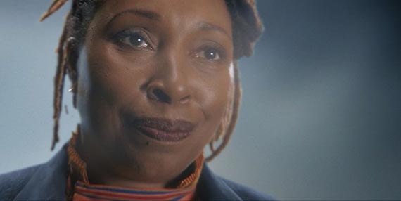 Back in the capitol, the Master traps the Doctor in a “paralysis field”, and plugs her into the matrix. Once inside, the Doctor hears the Masters voice, narrating the whole back story of the Timeless Child. Once upon a time, there was an explorer named Tecteun (Seylan Baxter), from Gallifrey. She was the first Shobogan (Gallifrey’s indigenous race) to develop space travel. On her travels, on a distant planet, she found a gateway – a boundary into another dimension/universe. Beneath the gateway’s monument she found an abandoned child from another realm. She took the child as her own, returning to Gallifrey. One day, playing with a friend, the child fell off a cliff (sounds familiar). On the ground Tecteun discovers the child is alive – she regenerates into a new body. The first regeneration of Gallifrey.
